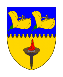 Coupé sapiné d´azur et d´or : au 1er deux fleurs de genêt en naturel posées en fasce, au 2e un flambeau allumé au naturel posé en pal.