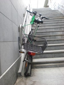 Das Rad wurde von mir so fixiert, wie ich es auch durchschieben müsste (sonst kann ich ja kein Foto machen). Man sieht: irgendetwas bleibt immer hängen.