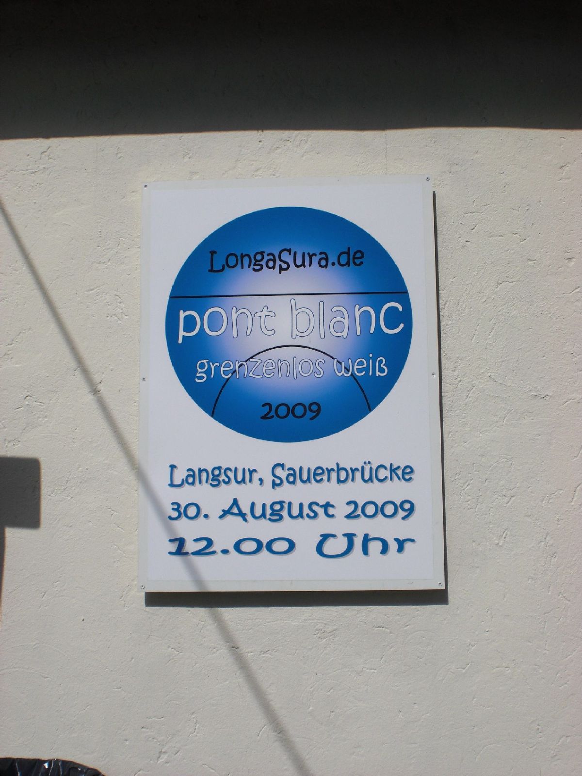 Den Auftakt zum Pont-Blanc bildete die Anbringung eines entsprechenden Schildchens im Juni, und am Luxemburger Nationalfeiertag, dem 23. Juni führten die culturbeflissenen “Luxemburg-Pendler” eine aufsehen erregende Putzaktion zur Vorbereitung des Pont-Blanc durch, und zwar, wie eine frühere Fassung dieses Berichtes stolz versicherte: Ganz stilecht, alles in Weiß! Klar! Wer derart mitten in der Woche eine Gemeindebrücke putzt möchte die Freiwilligkeit dieser guten Tat herausstreichen und nicht mit einem Ein-Eurojobber verwechselt werden!