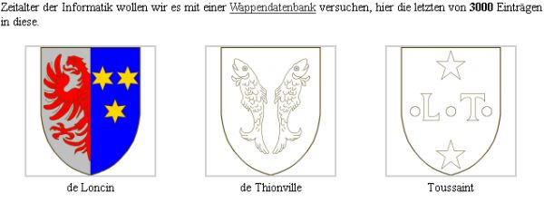 Damit wären dann alle leicht zu zeichnenden Wappen eingegeben, und meine Datenbank hinreichend gefüllt dann man sich Gedanken machen müssen, ihre Funktionalität zu verbessern. Was fehlt sind z.B.