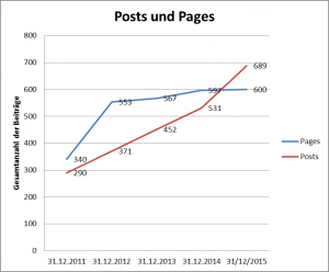 Die Entwicklung der Anzahl der Posts und der Pages auf Wiesel.lu 2011-2015 Sizes: 150 × 150 / 300 × 248 / 620 × 513 / 815 × 675 Posts vs. Pages