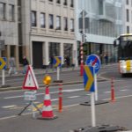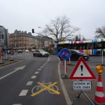 Just war elo fir eng Woch – wéinst Chantier um Niveau vun der place de Bruxelles – d’Furt zou déi de Velo vun der avenue Marie-Thérèse riwer ob de boulevard F.D.Roosevelt bruecht huet, sou dat ob der Kräizung de Velo huet missen mam Verkéier fueren.