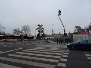 DSC05147 Sizes: 150 × 150 / 300 × 225 / 620 × 465 / 620 × 465 / 2592 × 1944 Über den Zebrastreifen. Zur Sicherheit kann man das Rad schieben, muss aber nicht.