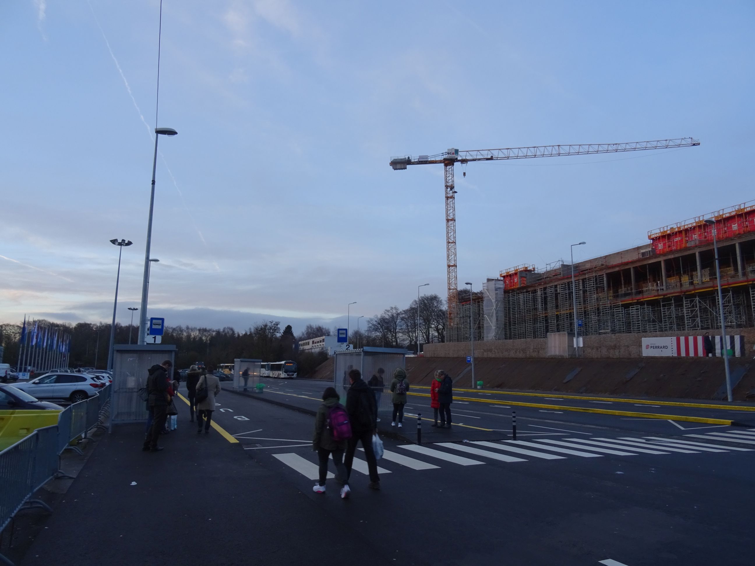 Endstation der Tram ist die Luxexpo. Es haben sich Leute beschwert, dass man unter dem Dach nicht trocken steht. Ich brauchte das bislang nicht, ich stieg nur ein, wenn die Tram schon da stand.