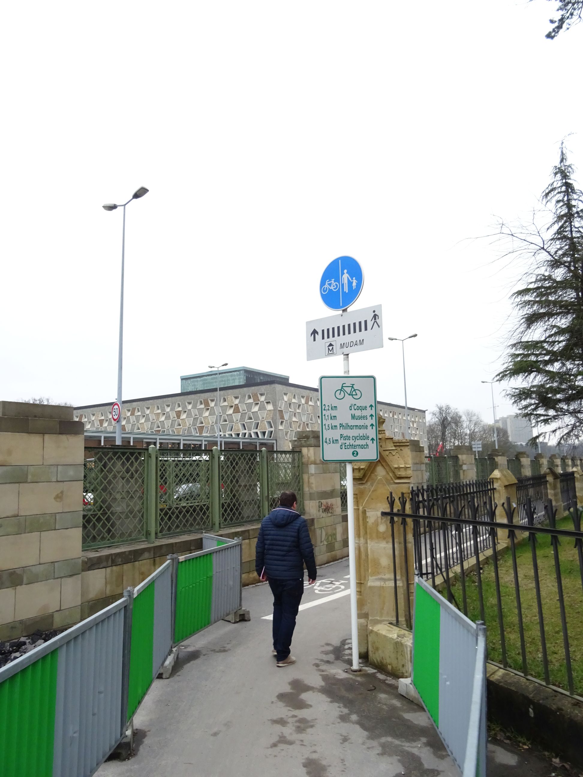 Hier quert der Fussgänger nacheinander, Tram, Radweg und dann eine vielbefahrene Strasse.