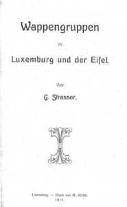 - Wappengruppen in Luxemburg und der Eifel ¦ Strasser, Georg. (1919) – In: Publications de la Section historique de l’Institut (Royal) Grand-Ducal de Luxembourg vol. 59 (1919) p. 339-367