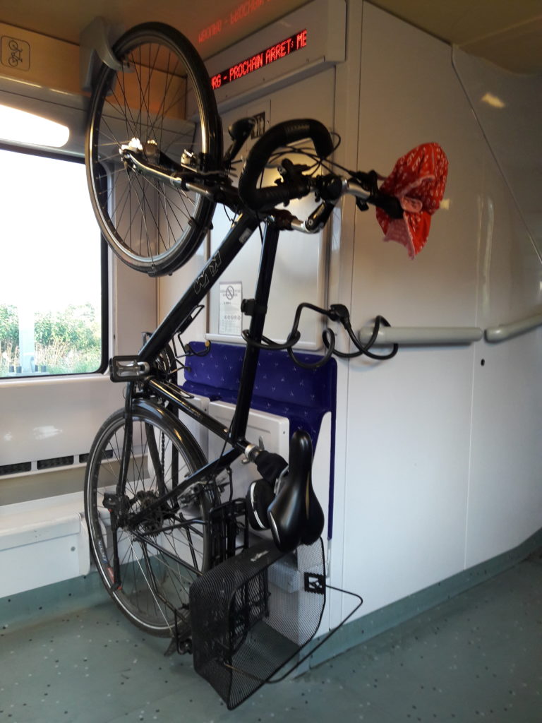 Das Rad aufgehangen im Morgenzug Sizes: 150 × 150 / 225 × 300 / 620 × 827 / 620 × 827 / 1152 × 1536 / 1536 × 2048 / 1920 × 2560 Mein Fahrrad im Zug. Einer der wenigen Wagen, wo man das Rad aufhängen muss.