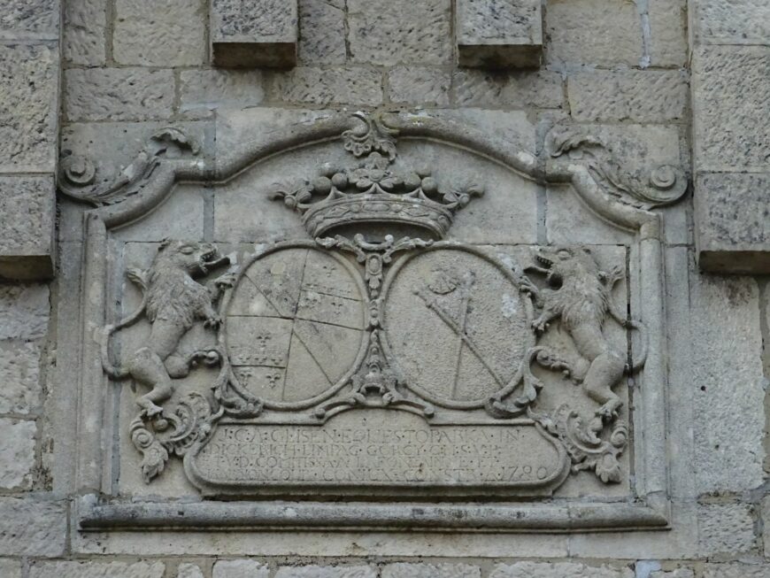 Letzte Woche war ich mit dem IVV in Limpach spazieren. Es ist toll, dass das wieder möglich ist. Dabei kam ich an der Kirche vorbei, die mir im Januar schon einmal aufgefallen war, denn über dem Eingang prangt ein Allianzwappen! Dieses wollen wir uns mal näher betrachten: Unter einer Krone sehen wir zwei runde Schilde. […]