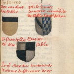 Prinsault, page 51 Sizes: 150 × 150 / 201 × 300 / 303 × 453 Prinsault, page 51 d’or au chef de sable. party, le premier d’argent à une bende de sable, l’aultre de vars. escartelé d’argent et de sable.