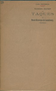 L’intention de ce travail est de dresser l’inventaire des taques du Musée de Luxembourg. Les forges étaient nombreuses dans le pays, nous sommes voisins du Trévirais, de l’Eifel, du pays de la Sarre et de la Lorraine ou l’industrie du fer était très active. Chaque maison possédait au moins une taque. Néanmoins notre collection nationale -n’en compte que 37 exemplaires. C’est insuffisant. Il est vrai que ces objets sont devenus de plus en plus recherchés, surtout par les étrangers, et que leur prix est devenu très élevé;