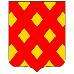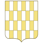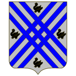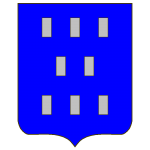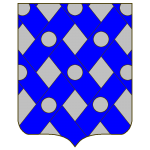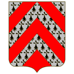 Les pièces de vair sont disposées sur quatre rangs ou tires: aux premier et troisième rangs, quatre cloches d’azur et trois d’argent, et deux demi-cloches d’argent aux extrémités; aux deuxième et quatrième rangs, quatre cloches d’argent, trois d’azur et deux demies d’azur aux extrémités. (Fig.41 bis.)