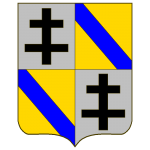 « Écartelé: aux un et quatre contre-écartelé, aux deux et trois contre-écartelé en sautoir. »