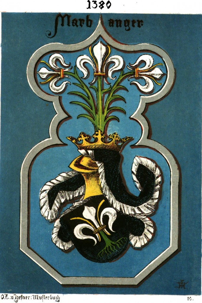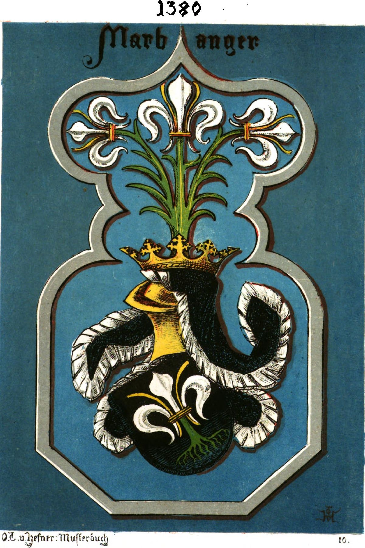 Wappen des Geschlechtes Marhanger aus dem Jahre 1380 Sizes: 150 × 150 / 200 × 300 / 620 × 930 / 1200 × 1797 OTvH, Tafel 10. Wappen des Geschlechtes Marhanger aus dem Jahre 1380