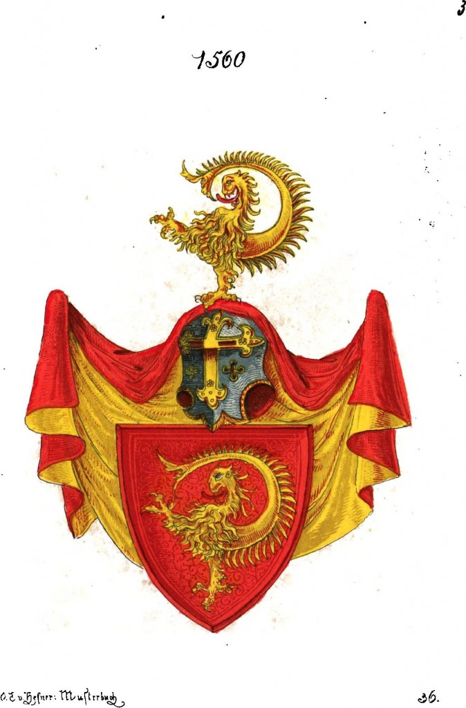 Imhofsches Wappen aus dem Jahre 1560 Sizes: 150 × 150 / 197 × 300 / 620 × 942 / 1200 × 1821 OTvH, Tafel 36: Imhofsches Wappen aus dem Jahre 1560
