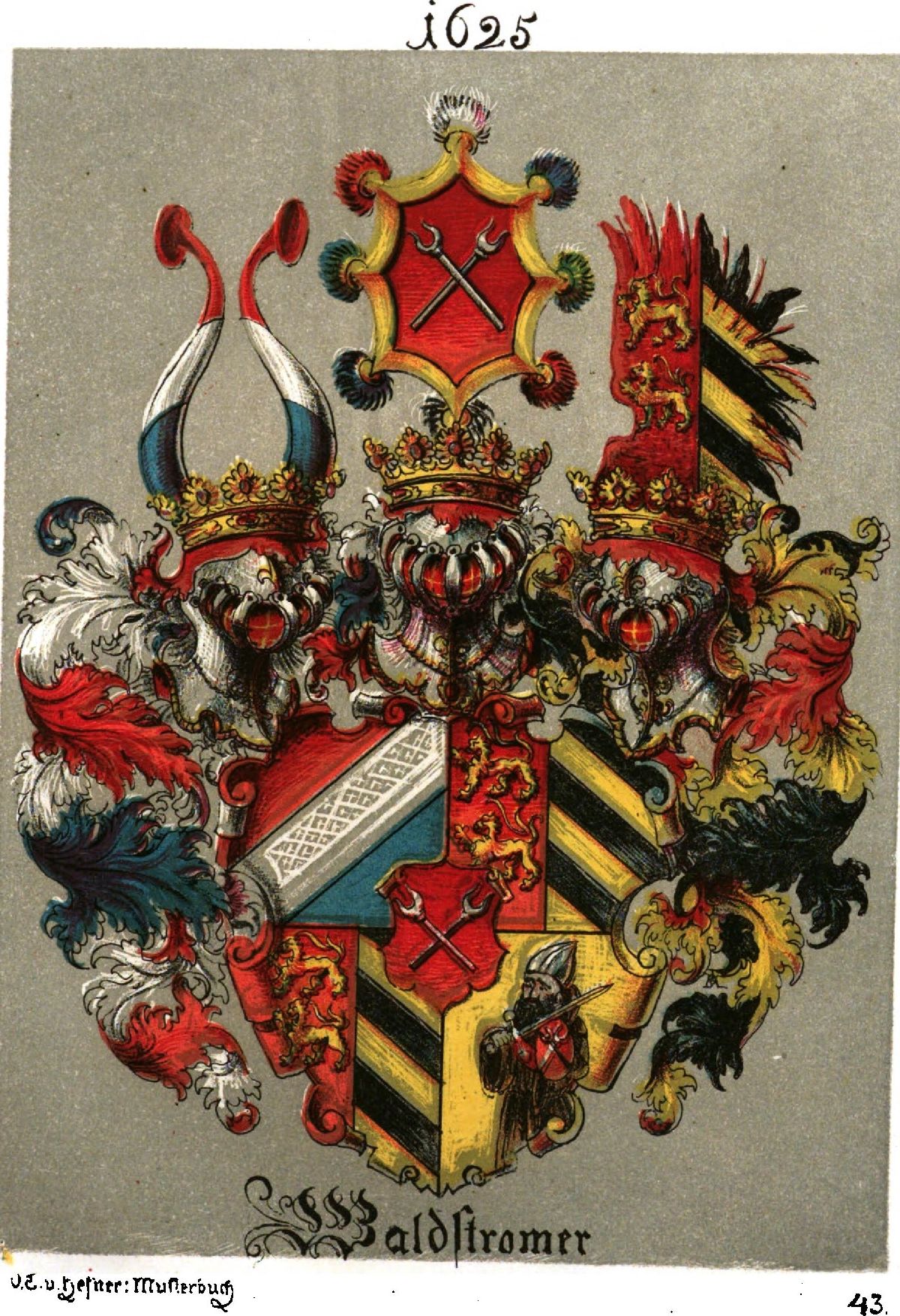 Wappen des Geschlechtes Waldstromer vom Jahre 1625 Sizes: 150 × 150 / 205 × 300 / 620 × 907 / 1200 × 1755 OTvH, Tafel 43: Wappen des Geschlechtes Waldstromer vom Jahre 1625
