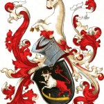Möglicherweise finden Sie etwas in seinen “Wappenbüchern”. Die dürften auf googlebooks zu finden sein.