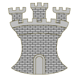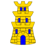 2, tour sommée de trois tourelles, dans les armes de Delpuech de Comeiras, en Languedoc