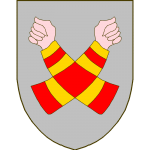 VyghProvenance: Gueldre Armes:D’argent à deux bras, passés en sautoir, habillés chacun d’un componé de gueules et d’or chaque bras rebrassé d’or, les poings fermés, de carnation. Quelle:Armorial de Rietstap, Planche 5 Wappen Nummer 7 Mediatags:argent, Armorial de Rietstap, bras, carnation, componé, gueules, habillé, or, passés et sautoir, rebrassé, wappen, |