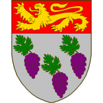 D’argent à trois grappes de raisin de pourpre, feuillées et tigées de sinople, au chef de gueules chargé d’un lion léopardé d’or.