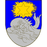 D’azur à un dauphin nageant sur une mer, la queue en haut, la tête tournée vers senestre, le tout d’argent, accompagné en chef d’une étoile hérissée d’or.