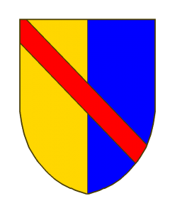 Parti d’or et d’azur, à une cotice de gueules, brochante sur le tout.
