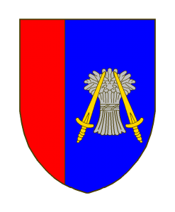 Amira, von (Bavière) Sizes: 150 × 150 / 247 × 300 / 700 × 850 von Amira Provenance: Bavière Armes: D’azur, adextré de gueules, l’azur chargé d’une gerbe d’argent, accostée de deux épées d’or, posées en chevrons touchant la gerbe. Quelle: Armorial de Rietstap, Planche 1 Wappen Nummer 51