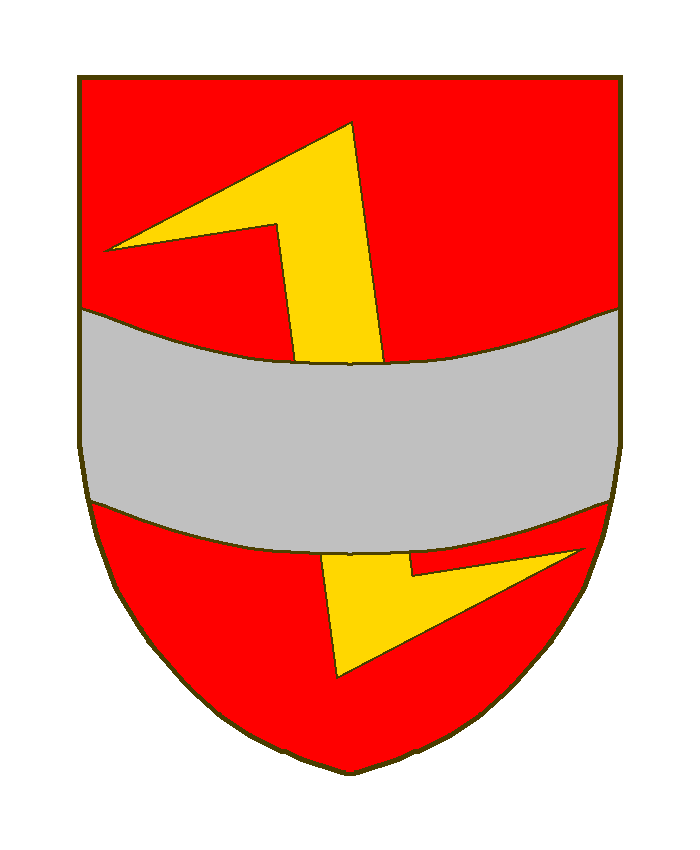 De gueules au crampon d’or, à la fasce affaissée d’argent, brochante sur le tout.