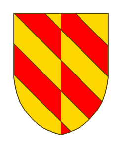 Bandé d’or et de gueules de six pièces, parti de l’un en l’autre.