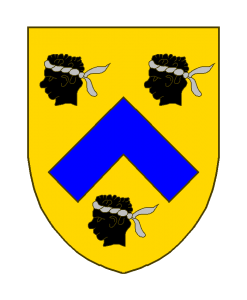 D’or au chevron alésé d’azur, accompagné de trois têtes de More, tortillées d’argent.