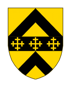D’or à la fasce de sable, chargée de trois croisettes recroisettées du champ et accompagnée de deux chevrons du second émail, l’une en chef et l’autre en pointe.