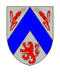 Meujot (Maine) Sizes: 150 × 150 / 247 × 300 / 700 × 850 Meujot Provenance: Maine Armes: D’argent à un chevron d’azur, accompagné en chef de deux épis feuillée de gueules, côtoyant le chevron, et en pointe d’un lion du même. Quelle: Armorial de Rietstap, Planche 2 Wappen Nummer 59