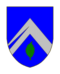 D’azur au chevron d’argent, haussé dans l’écu, reliant à dextre deux jambes diminuées de largeur, accompagné en pointe d’une feuille de tilleul de sinople, la tige on bas.