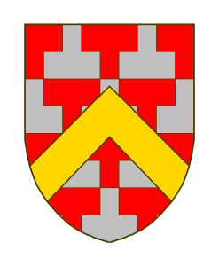 Potencé contre-potencé de gueules et d’argent, au chevron d’or, brochant sur le tout.