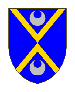 D’azur à deux chevrons appointés d’or, l’un renversé et mouvant du chef, accompagnés de deux croissants d’argent entre les jambes des chevrons, l’un en chef et l’autre en pointe.