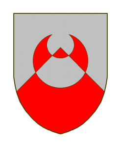 Divisé en chevron d’argent sur gueules, au croissant de l’un en l’autre.