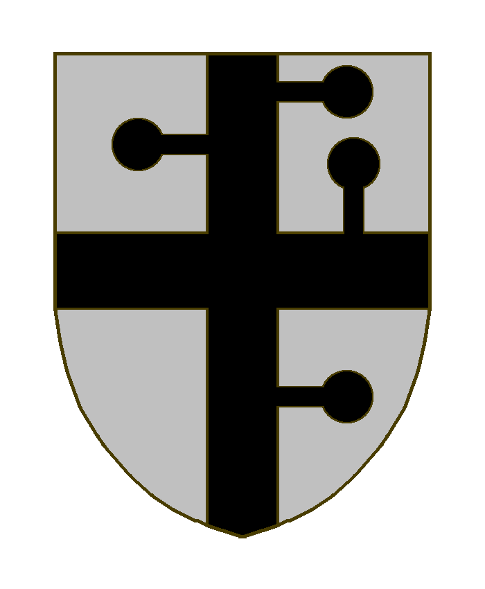 D’argent à la croix de sable, ornée de quatre petits bâtons pommetés du même, qui font des angles droits avec les branches de la croix: une à dextre en bas et une à senestre en haut du montant supérieur, le troisième sur le bord supérieur du bras senestre, et le quatrième sur le milieu du côté senestre du montant inférieur.