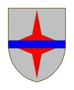 D’argent à une croix étoilée de gueules ( étoile à quatre rais), et une burèle d’azur, brochante sur le tout