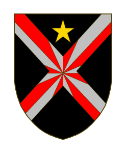 De sable au sautoir gironné de gueules et d’argent, accompagné en chef d’une étoile d’or.
