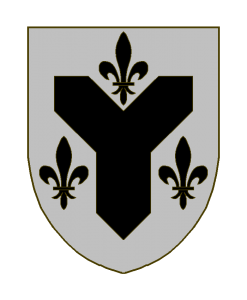 D’argent au pairle alésé de sable, les extrémités aiguisées, accompagné de trois fleurs-de-lis mal-ordonnées du même.