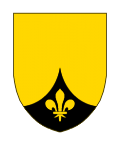 D’or à une pointe arrondie et abaissée de sable, chargée d’une fleur-de-lis du premier émail.