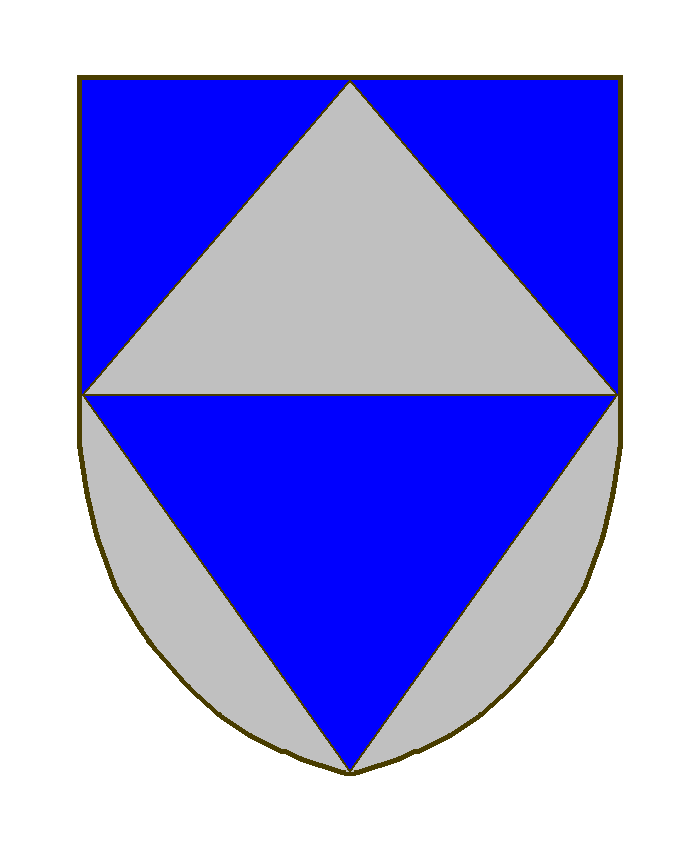 Coupé d’argent sur azur, chapé–chaussé de l’un en l’autre.