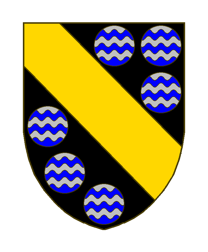 Stourton lord Stourton (Yorkshire) Sizes: 150 × 150 / 247 × 300 / 700 × 850 Stourton lord Stourton Provenance: Yorkshire Armes: De sable à la bande d’or, accompagnée de six rondelles, rangées en orle, chacune fascée–ondée d’argent et d’azur de six pièces. Quelle: Armorial de Rietstap, Planche 4 Wappen Nummer 23