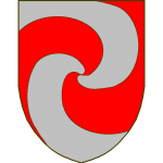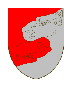 Taillé, des deux côtés en forme de gueule de lion, de gueules sur d’argent.