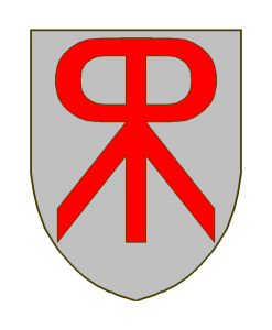 De gueules à deux R adossés et réunis d’argent.