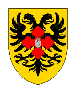 D’or à l’aigle bicéphale de sable chargée en coeur d’une croix tréflée (ou fleurdelisée) de gueules surchargée d’une main de Dieu de carnation (ou d’argent)