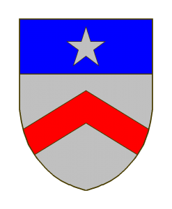 D’argent au chevron abaissé de gueules, au chef d’azur à l’étoile d’argent.