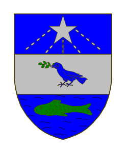 D’azur à la fasce d’argent chargé d’une colombe d’azur tenant en son bec un rameau d’olivier de sinople, accompagnée en chef d’une étoile rayonnante vers-le bas d’argent, la pointe chargé d’ondes de sable dans lesquelles nage un poisson de sinople.
