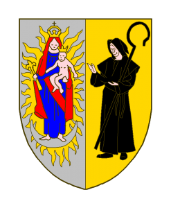 Parti: A dextre d’argent aux armoiries abbatiales à senestre d’or à un moine tenant une crosse de sable