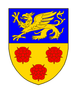 Coupé, d’azur au griffon passant d’or, et d’or à trois roses de gueules.