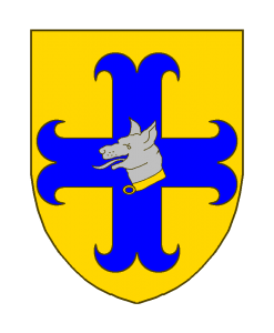 D’or à la croix ancrée d’azur chargée au coeur d’une tête et col de lévrier d’argent colleté d’or ou de gueules